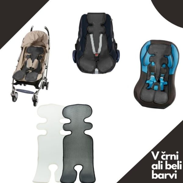 Univerzalna zračna podloga proti potenju uporaben za katerikoli voziček ali avtosedež.