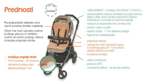 Po priporočilu staršev smo razvili posebno široko vzglavje. Otrok ima med uporabo zračne podloge glavico in hrbtišče vedno na zračni podlogi, ta pa zmanjša učinke pregrevanja nanj.