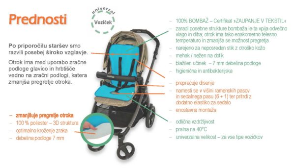 Po priporočilu staršev smo razvili posebno široko vzglavje. Otrok ima med uporabo zračne podloge glavico in hrbtišče vedno na zračni podlogi, ta pa zmanjša učinke pregrevanja nanj.